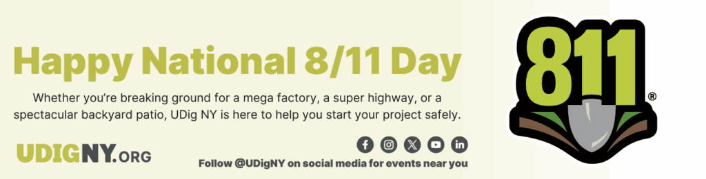 (August 4, 2025) UDig NY, the nonprofit 811 contact center serving Upstate New York, is hosting community events across the state in honor of National 811 Day. August 11 (8/11 on the calendar) serves as a reminder for anyone planning a project that involves digging to notify 811 so that underground utilities can be marked out with flags or paint, helping them to dig safely. In Upstate New York, anyone digging should call 811 or place a location request online at UDigNY.org at least two full working days before their planned start date.